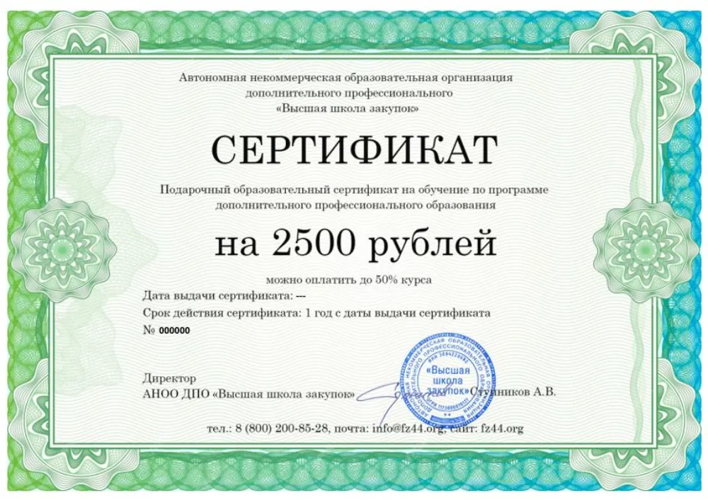 Вы получаете официальный диплом о профессиональной переподготовке. Высшая школа закупок (fz44.org) в обязательном порядке вносит сведения об обучении в Санкт-Петербурге в реестр ФИС ФРДО, подтверждая вашу квалификацию для работы в госкорпорациях Санкт-Петербурга.